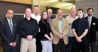 Bradley Gerbasich, who transferred to WMU from the University of Toledo, was honored by Slobodan Urdarevik, the lead lecturer for IME 1420, before an audience of students eligible to compete in the 2008 Fall AutoCAD Contest.